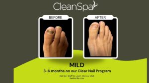 Mild to moderate fungal infections are best managed through CleanSpa’s ClearNail Program, while more advanced or persistent cases are referred to Feet for Life Podiatry Centers for medical or surgical care.